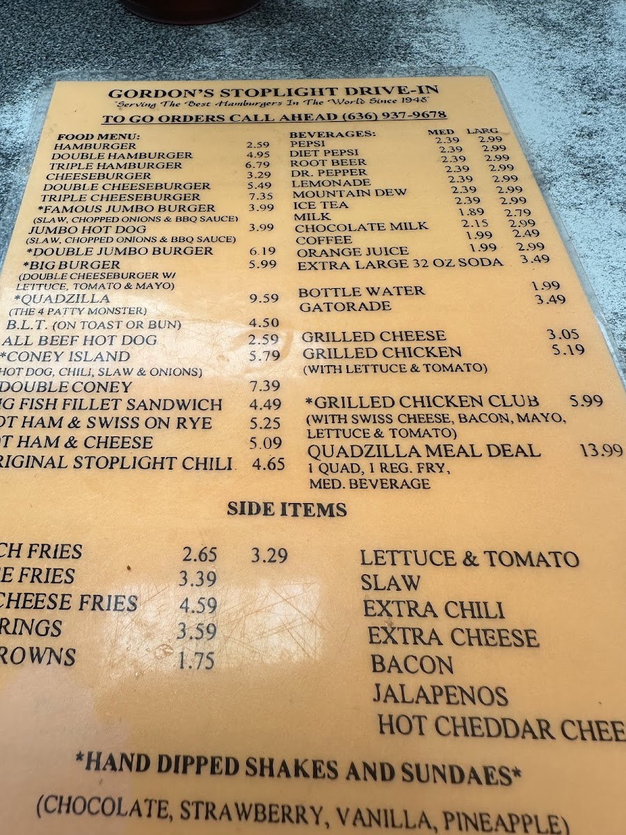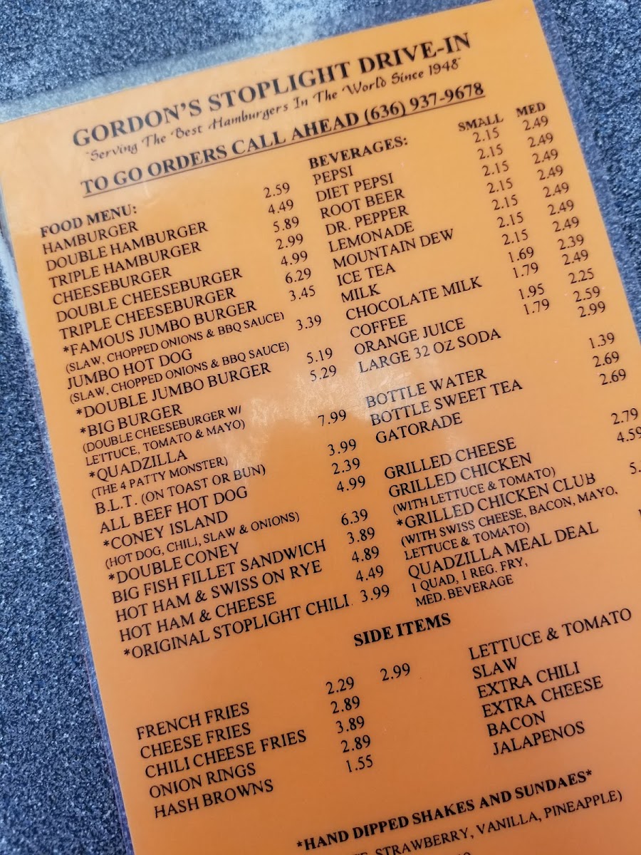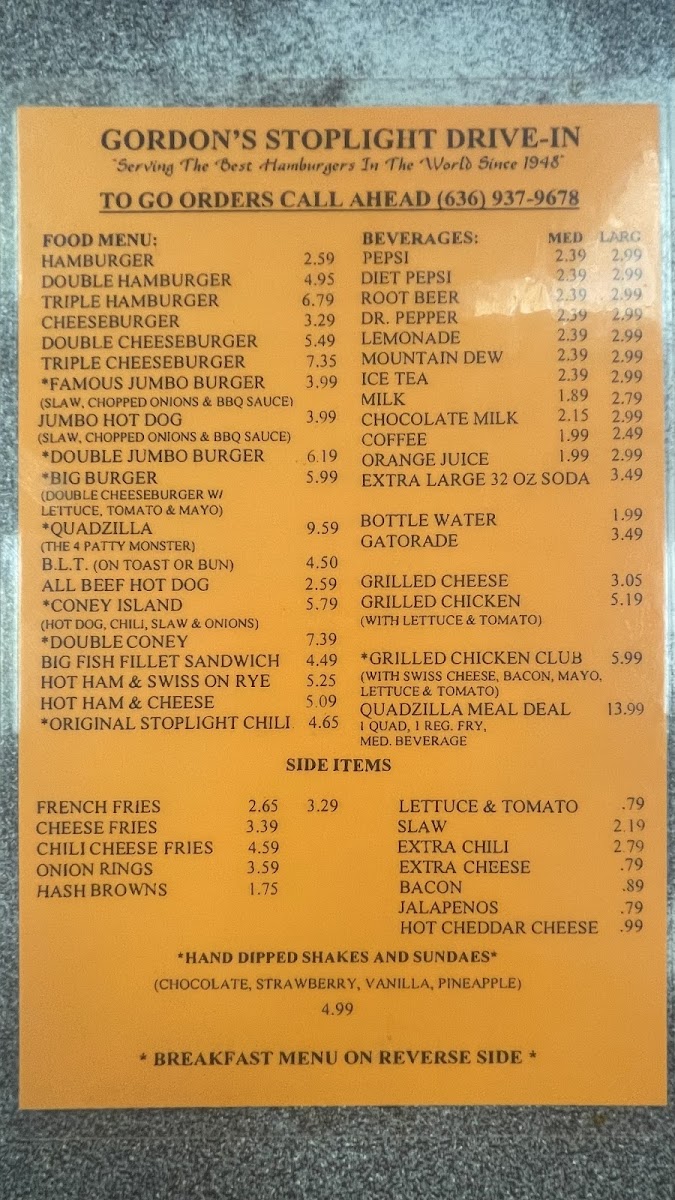 Welcome to Gordon's Stop Light Drive In, a nostalgic gem nestled at 500 Bailey Rd, Crystal City, MO. Since 1948, this classic American diner has beckoned locals and travelers alike for its delightful offerings and retro charm. The menu is a tribute to traditional fast-food favorites.